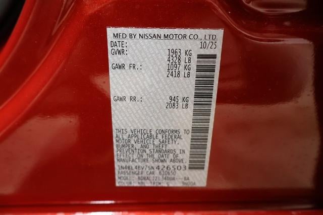 Scarlet Ember 2025 Nissan Altima 4D Sedan 2.5 SL 2.5L 4-Cylinder DOHC 16V 27/37 City/Highway MPG CVT with Xtronic FWD