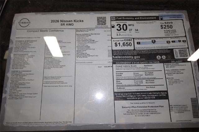 Canyon Bronze Metallic 2026 Nissan Kicks 4D Sport Utility SR 2.0L DOHC 27/34 City/Highway MPG CVT with Xtronic AWD