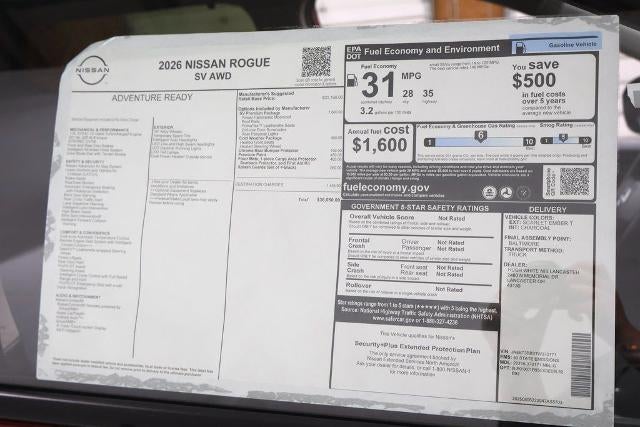 Scarlet Ember Tintcoat 2026 Nissan Rogue 4D Sport Utility SV 1.5L DOHC 28/35 City/Highway MPG CVT with Xtronic AWD