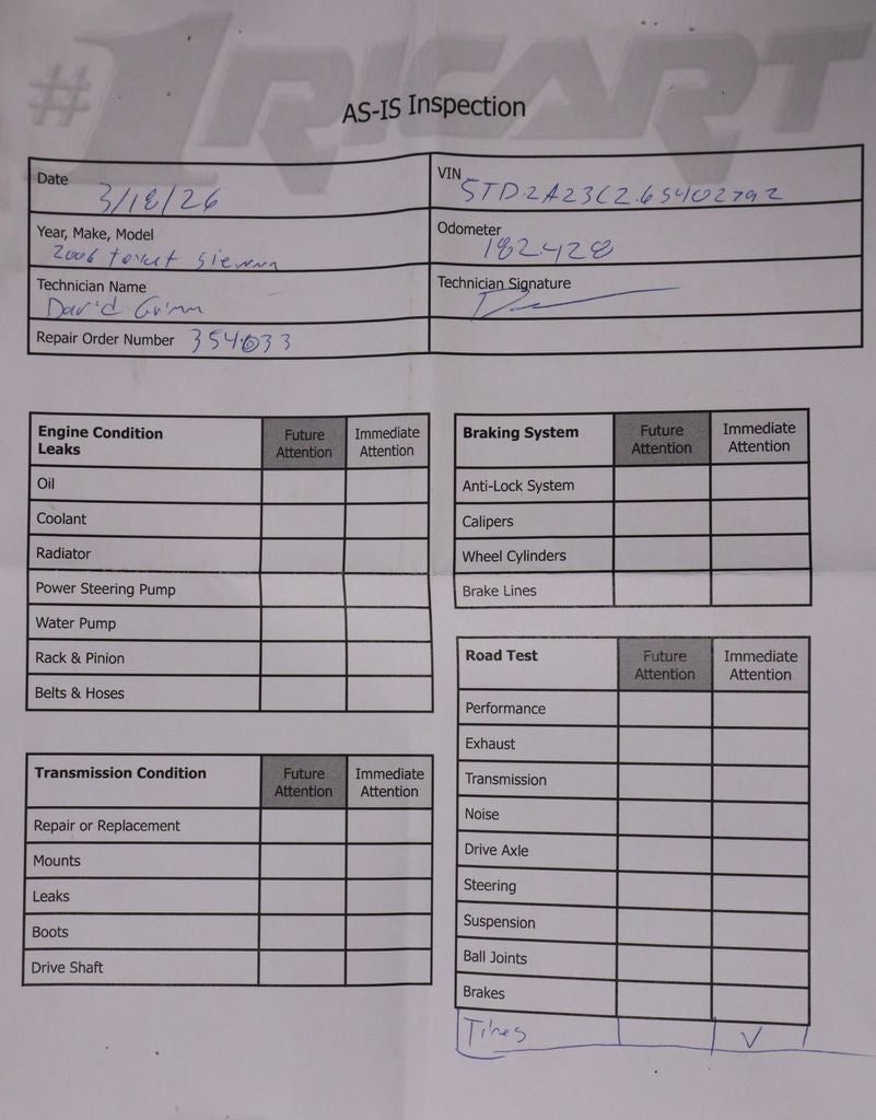 This 2006 Toyota Sienna LE delivers reliable performance and family-focused versatility, finished in Desert Sand Mica with a Taupe interior featuring Metro Moquette seat trim for a warm, classic look. Powered by a 3.3L V6 SMPI DOHC engine paired with a smooth automatic transmission, it provides dependable performance for daily driving and long trips. Inside, the cabin offers comfortable seating, a spacious layout, and practical features designed for passenger convenience and flexibility. Built with Toyota’s reputation for durability and functionality, this Sienna LE is a smart choice for families on the go—available now at Ricart Automotive Used Car Factory.
