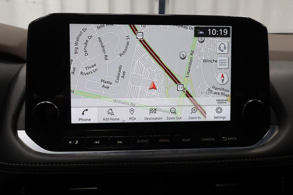 - Radio: AM/FM NissanConnect w/Navigation -inc: Nissan door to door navigation w/3D building graphics and satellite imagery featuring online POI search and online premium traffic information, SiriusXM Traffic, SiriusXM Travel Link, 9" color display w/multi-touch control, NissanConnect featuring Apple CarPlay and Android Auto, SiriusXM Satellite Radio, 2 illuminated USB connection ports (1 type-A, 1 type-C), Bluetooth® hands-free phone system, streaming audio via Bluetooth®, hands-free text messaging assistant